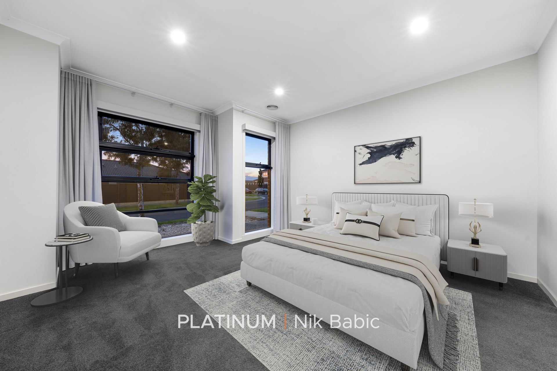 High-quality blinds providing privacy and ambiance throughout the home.