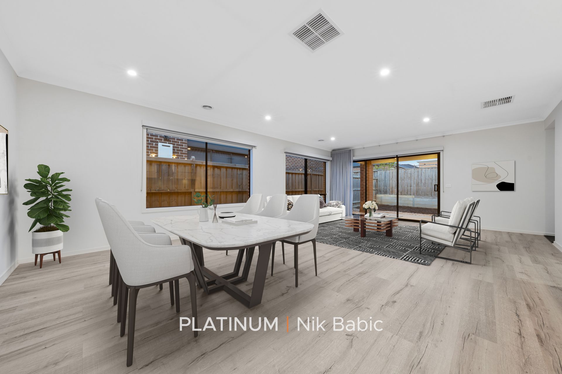 An expansive open-plan living area seamlessly integrating the kitchen and meals space, fostering connectivity and ease of living.